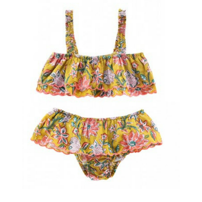 Title Image: Swimsuit – Mini Rodini; Neon Frill Bikini – Beanie & Bear; Rash Vest – Molo; Trunks – Tinycottons Sunglasses – ZooBug London