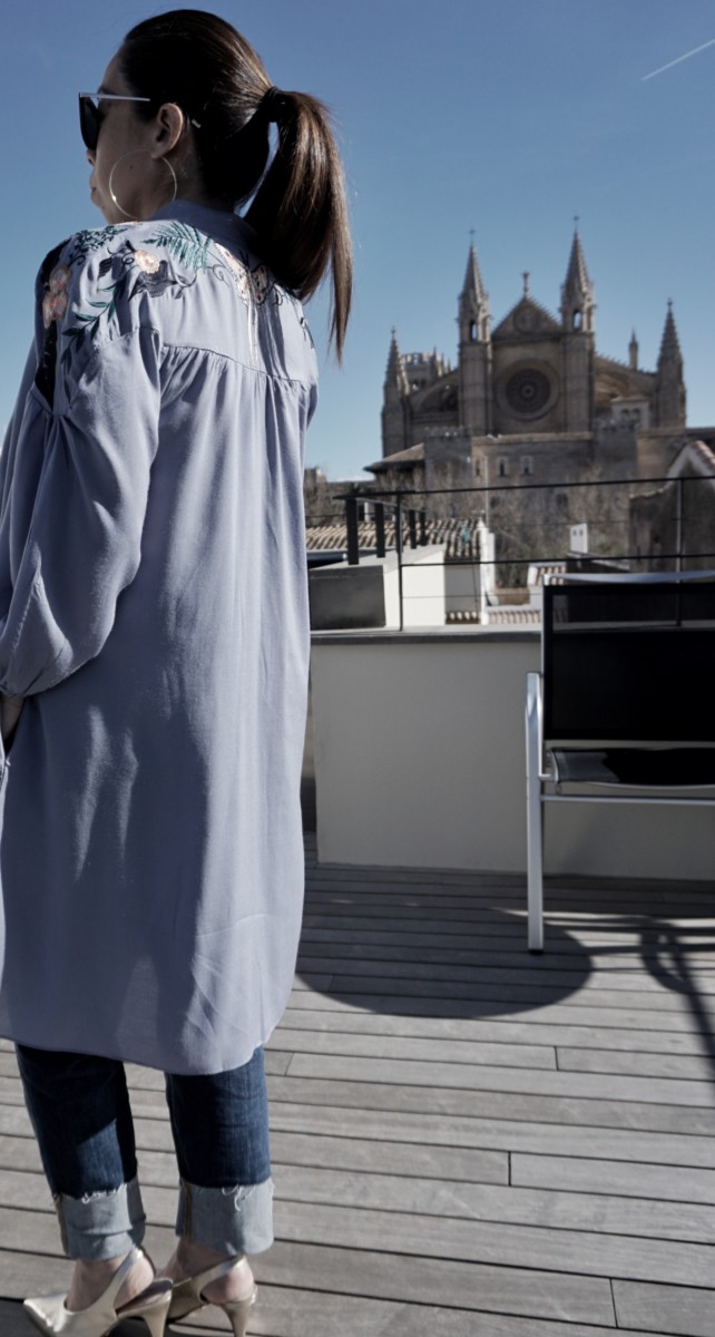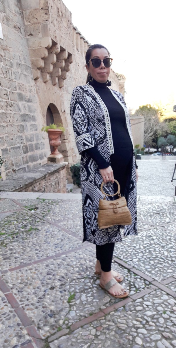 Basically you need to consider the bump is the big thing in the picture so other elements of your outfit need to streamline the rest of your body. So a long kaftan will elongate your body and skim over the bumpy bits you don’t want to show. A long sleeve will give the illusion of slender arms and length in the body too. A pretty flat shoe will add character to your outfit and if, like me, you put a lot of weight on your face then I’ve found long hair tied back in a slick ponytail with a statement earring lifts everything up. All really easy additions.