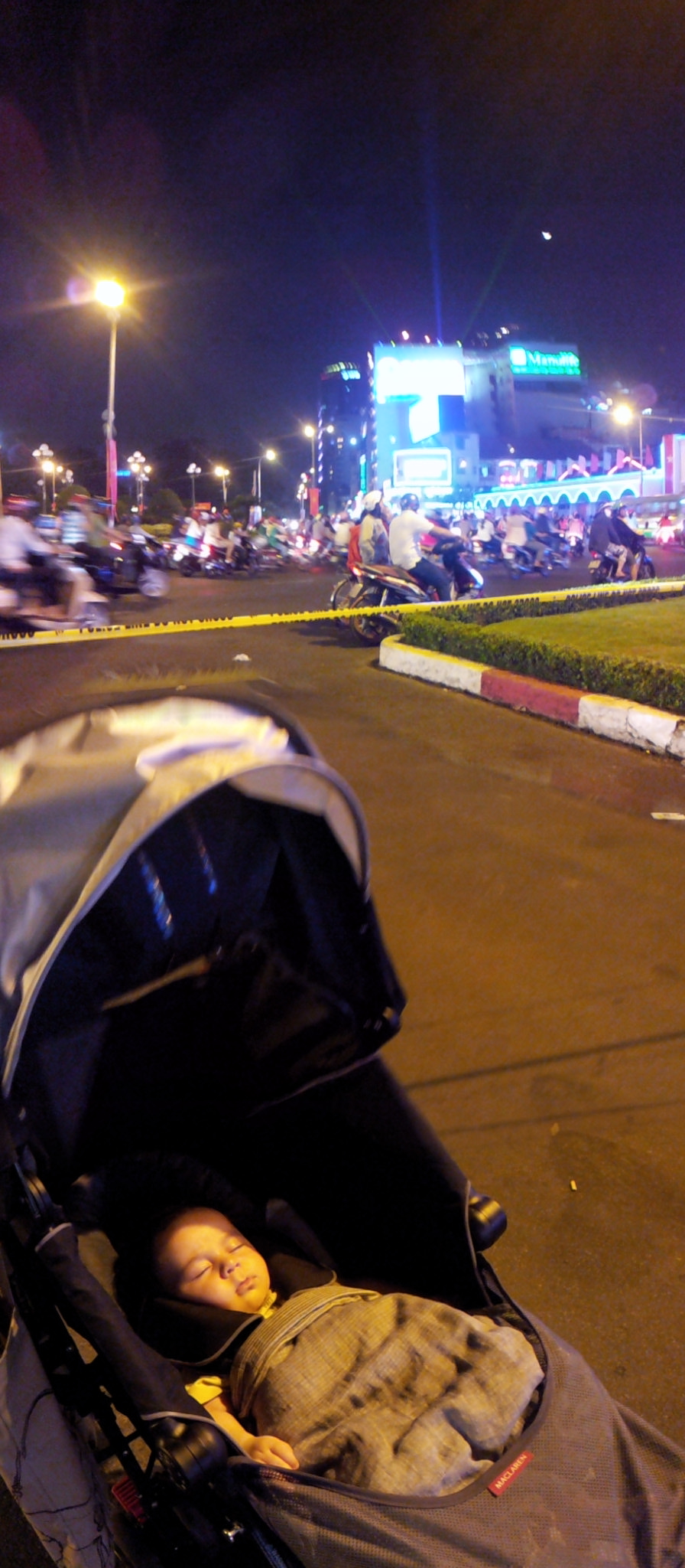 How to cross the road in Vietnam with a pram: In stark contradiction to the easy pavements, crossing the road in Vietnam is an art unto itself. I did have several near heart attacks during our week of Vietnamese road crossing but this is how to do it. When you decide to step off that pavement with the pram – make the decision with confidence, don’t hesitate, just go with strength and determination. If you don’t take on this attitude you will be stuck on the pavement forever because there are a zillion motorbikes in Ho Chi Minh City. This technique works because, although the sea of mopeds are quite possibly the scariest thing you’ll encounter here, you’ll find that they will actually dance to your tune and just gracefully veer around you – it is like an unsaid rule between drivers and pedestrians. Nobody stop, everyone just go and we’ll work with it.