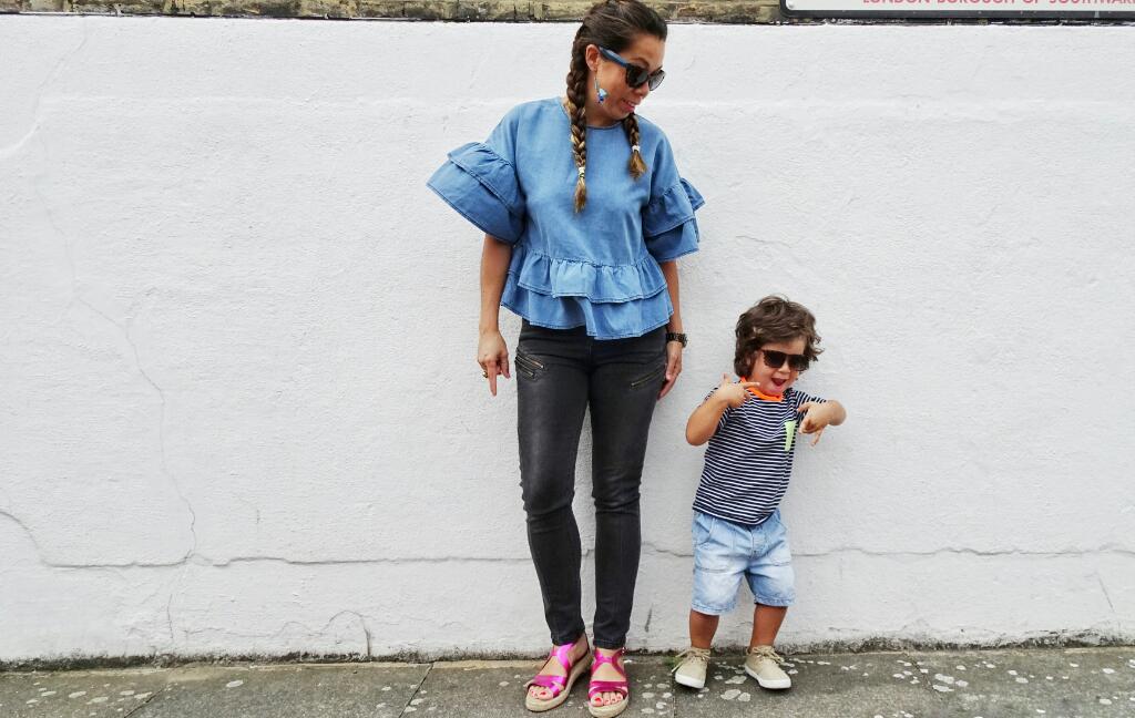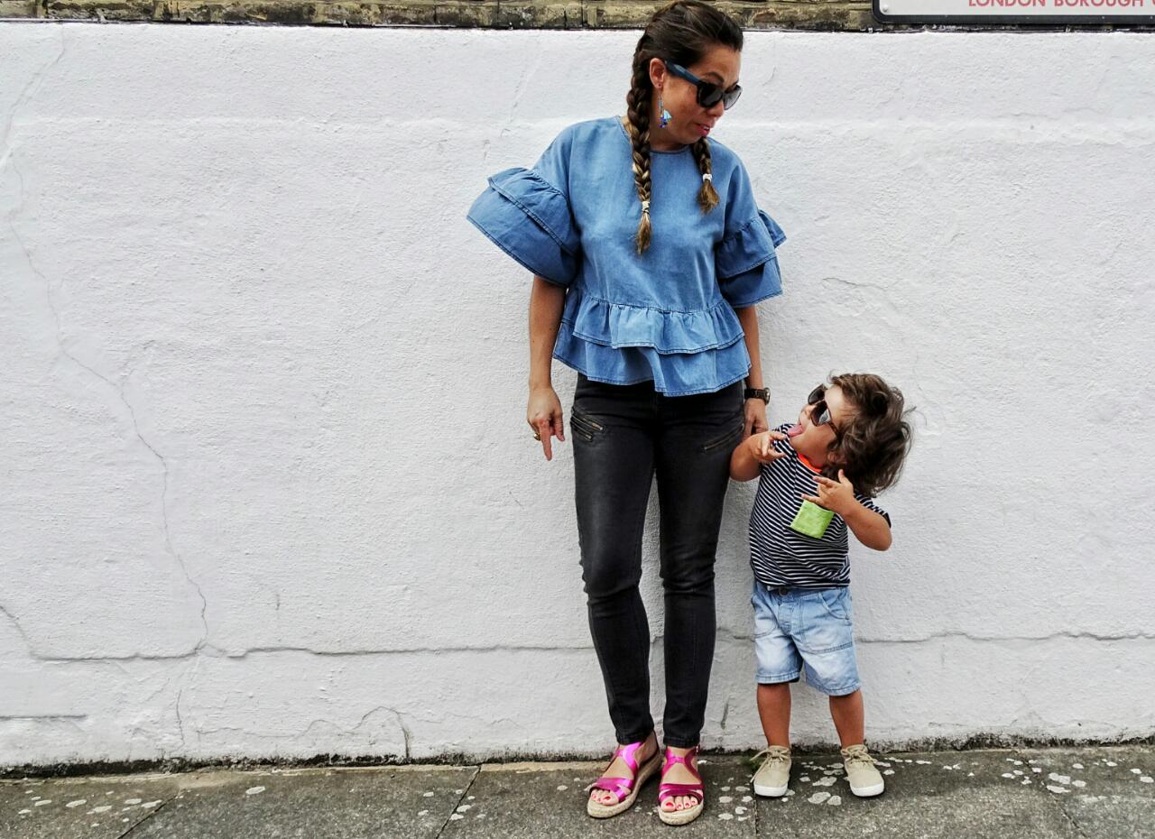 The other cool thing about this top is that it’s summery in design with flamenco sleeves but it’s also warm enough to wear in our unpredictable British summer weather. We were off to the pub and the park when I wore this but if you are going to do something which involves rolling up your sleeves (ie. milking cows) then I wouldn’t advise wearing this top.