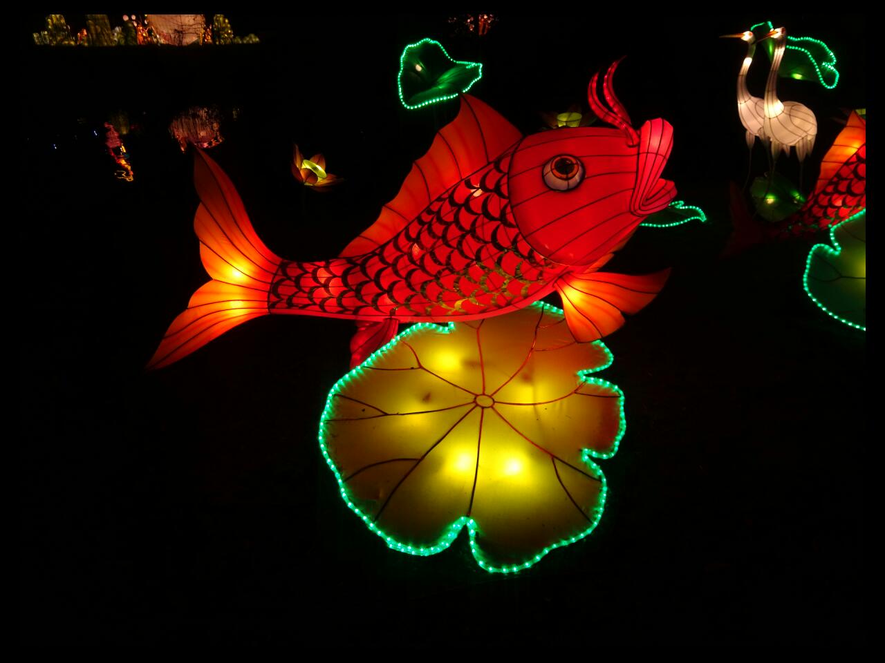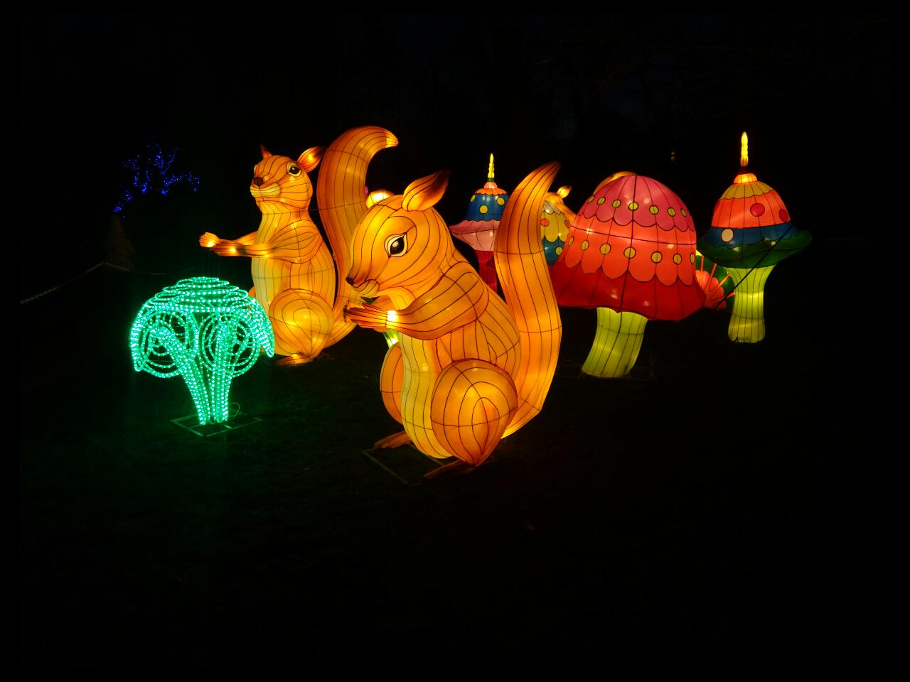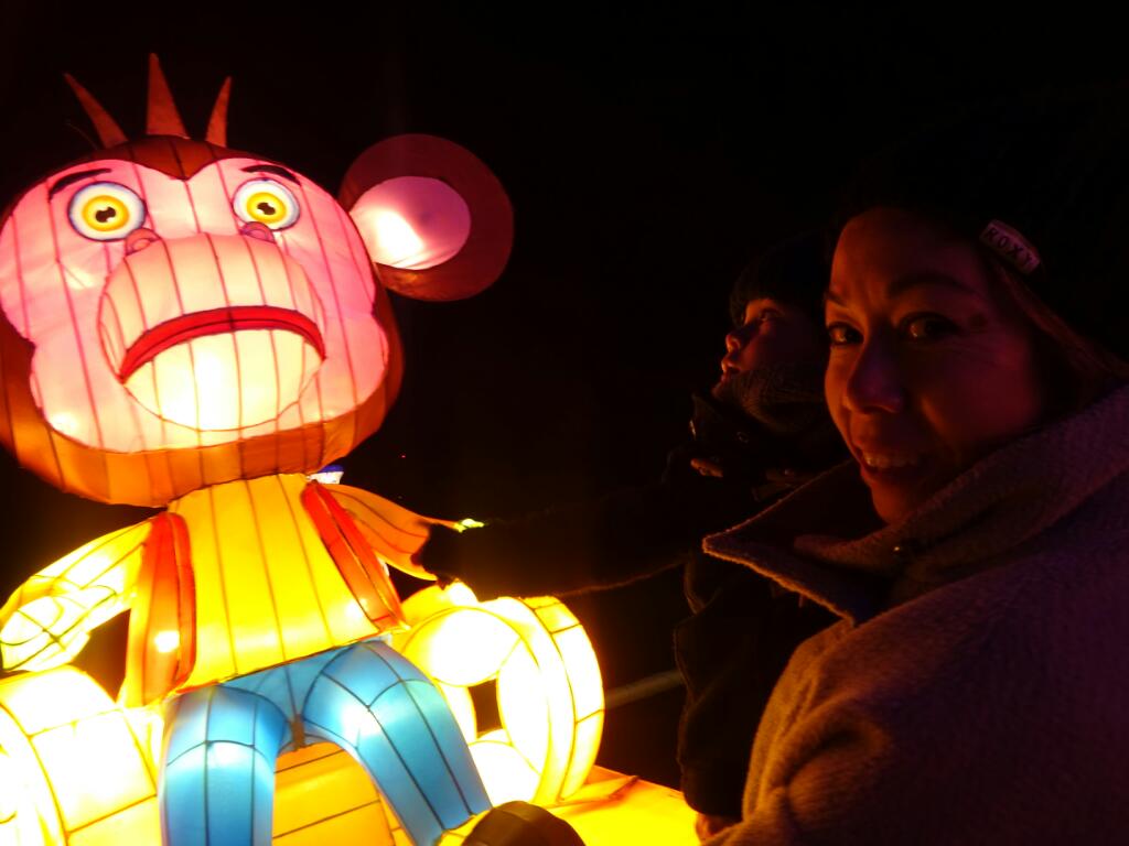 The festival is to celebrate Chinese New Year 2016 and the Year Of The Monkey. There are lots of funny and cute Asian inspired characters such as giant pandas playing amongst oversized and brightly coloured mushrooms. Staggeringly tall giraffe roaming amongst kangaroo and zebra. A huge recreation of the Monkey King and an absolutely beautiful 66-metre Chinese dragon sitting by the lake.