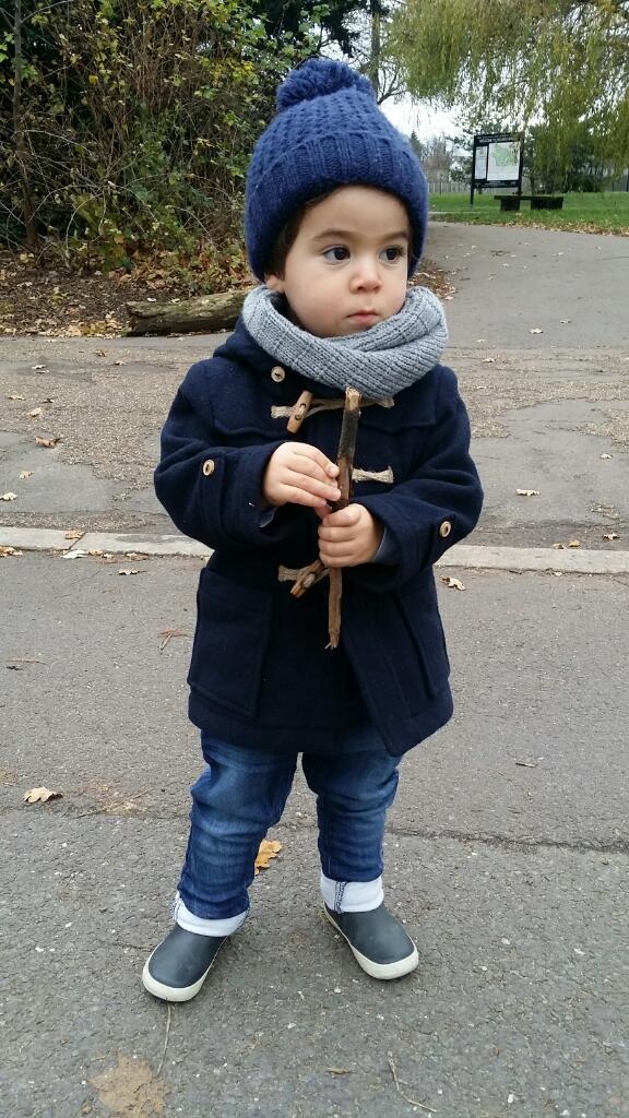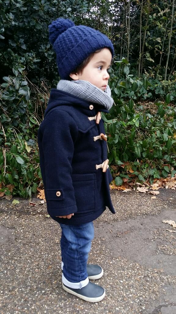 There is something about kids in a duffle coat don’t you think? Especially boys – the look seems synonymous with scallywag children getting up to no good, definitely a fitting look for T-Rex. This winter, I have a bigger, taller T-Rex who is harder to fit in a pram with his bulky puffer coat of last year and so the wool duffle is appearing to be a winner on all counts. I went for this Zara kids duffle coat paired with a grey snood which I am finding much better than a scarf as he doesn’t pull it off or, worse (some might say) strangle himself.